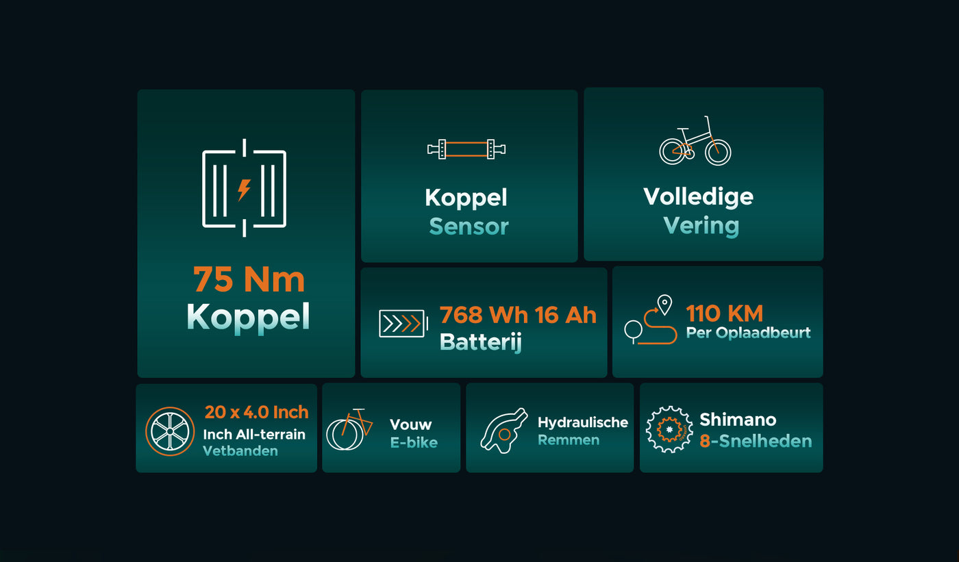 75 Nm High Torque Outdoor Adventure Opvouwbare Folding E-bike