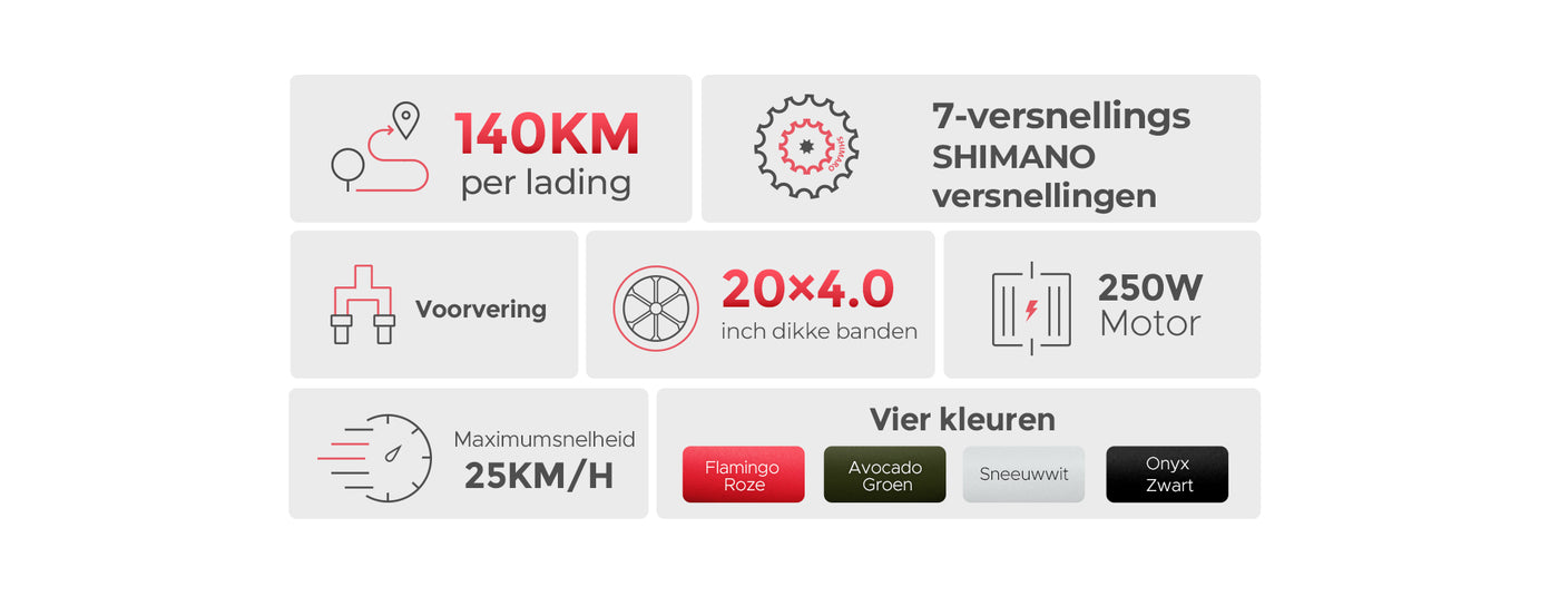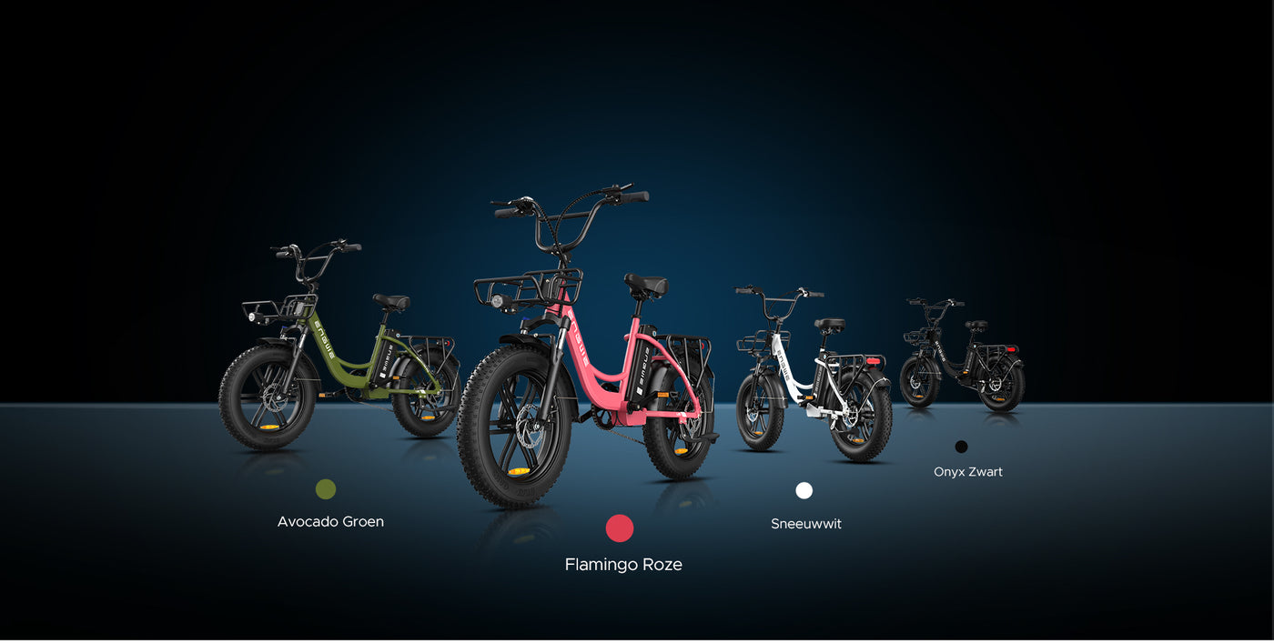 Elektrische step-thru fatbike met 140 km bereik en voorvering