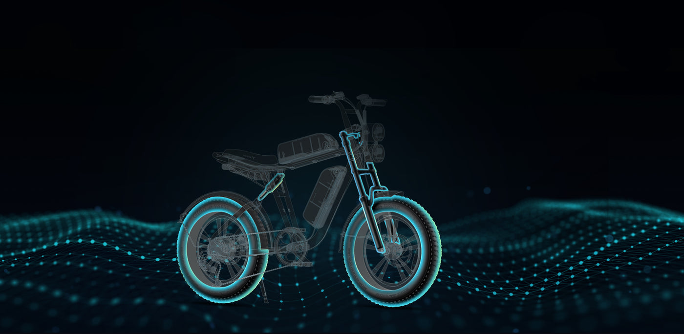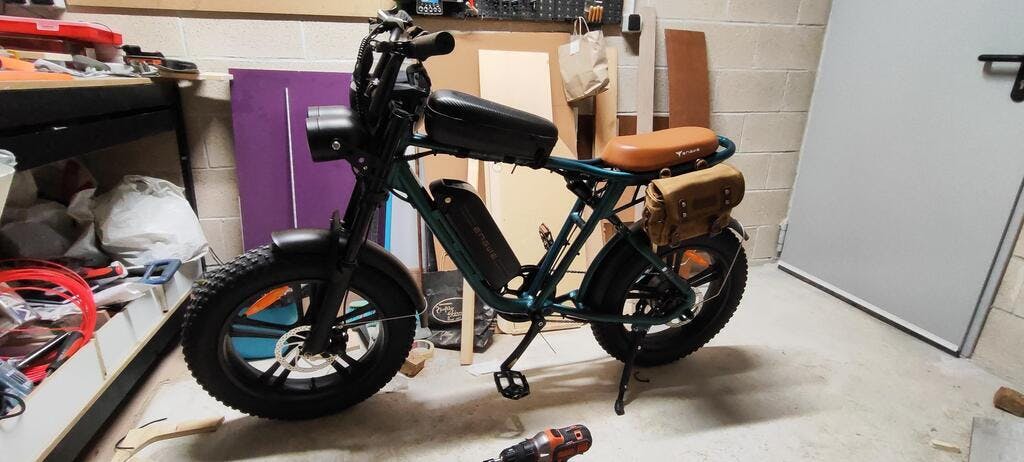 Een full-suspension fat e-bike die eruitziet als een motorfiets (conform de EU-regelgeving)