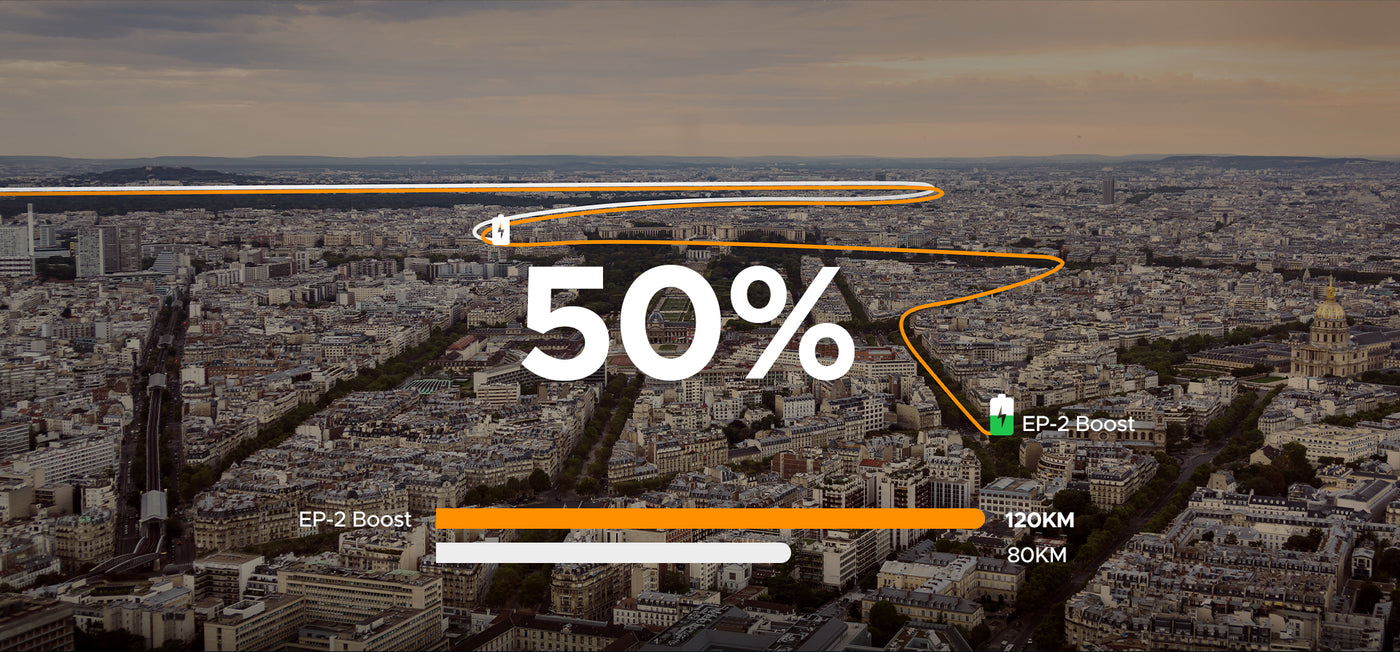 Druk op de Boost-knop voor een onmiddellijke krachtstoot, die je gemakkelijk bergopwaarts duwt.