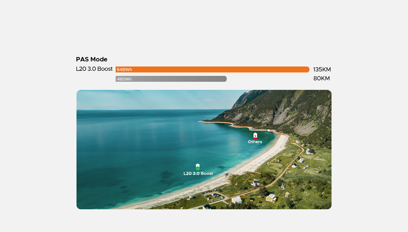 Druk op de Boost-knop voor directe acceleratie. Of je nu inhaalt, heuvels beklimt of gewoon zin hebt in spanning, de Boost-modus brengt de kracht binnen handbereik, net als rijden in een tweewielige supercar